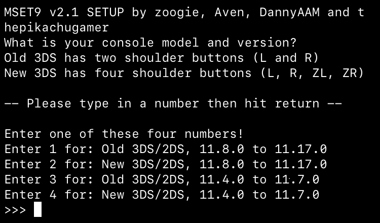 Ezen az oldalon a MSET9 szkriptet fogod használni, ami kiváltja az MSET9-et. Amíg a szkript fut, a felhasználói adat átmenetileg eltűnik, de vissza fog térni az oldal befejezésekor. Ha hibát kapsz a szkript futtatásakor, akkor a megoldás a hibára valószínüleg megtalálható a hibaelhárítás oldalon.