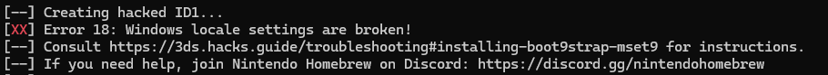 This page offers troubleshooting advice for commonly encountered issues with the "Installing boot9strap (MSET9)", "Installing boot9strap (MSET9 CLI)" and "Installing boot9strap (MSET9 Play Store)" pages. If you are unable to solve your issue with the advice on this page, please join Nintendo Homebrew on Discord and describe your issue, including what you have already tried.