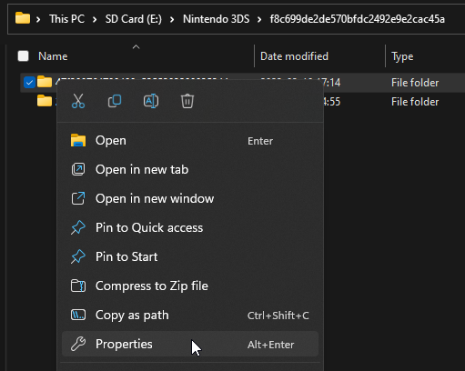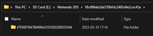 Nintendo 3DSfolder on your SD card - Write down the first few characters of the folder you see